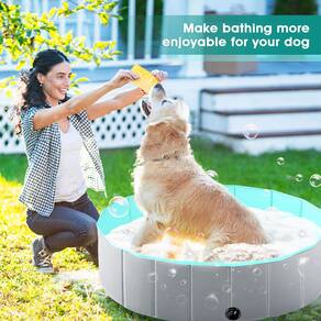 Piscina dobrável para cães, piscina infantil de plástico rígido para crianças, piscina portátil para cães, PVC para animais de estimação, banheira dobrável para cães, adequada para ambientes internos e externos (81 x 20 cm) - Design dobrável e portátil: nossa piscina para cães é portátil e conveniente para você carregar e armazenar a qualquer momento, a piscina dobrável para cães é uma ótima coisa para um dono de cachorro ter à mão. E, ao contrário das piscinas de plástico comuns, a piscina para cães é fácil de esvaziar, dobrada, de modo a minimizar o espaço de armazenamento. Você pode levar seu animal de estimação para brincar em qualquer lugar sem se preocupar com a limpeza do cão - Resistente e durável: a piscina para cães/crianças é construída com material de PVC premium, garantindo durabilidade robusta que resiste ao colapso e deformação. A piscina portátil para cães possui um tecido texturizado antiderrapante resistente à abrasão, não tóxico e à prova d'água, proporcionando excelente retenção de água. Nossa piscina de plástico ajuda a evitar que seus animais de estimação e crianças escorreguem enquanto brincam na piscina. Observação: corte as unhas do seu filhote para evitar possíveis danos ou vazamentos na parede interna - Fácil de usar e não inflável: nossa piscina para cães não precisa de bomba de ar para inflar, basta abrir a piscina para cães pequenos, garantir que o ralo esteja apertado e depois encha com 70%-80% de água, pode ser expandida e formar uma piscina circular. Seu animal de estimação infantil pode desfrutar de um spa fresco de verão. Nossa banheira portátil vem com um plugue de drenagem na posição inferior. É uma grande vantagem sobre outras piscinas para cães, você pode direcionar para onde a água vai, como direcioná-la para o seu jardim - Fácil de limpar: você ainda está preocupado com o incômodo de limpar o banheiro depois de dar banho em seu amigo peludo. Então seu salvador está aqui, nossa piscina dobrável projetada especificamente para cães. Permite que eles pulem na piscina de animais de estimação e se apaixonem pelo banho a partir de então. A limpeza também é fácil para a piscina de cães. Para limpar, limpe suavemente a superfície com um pano macio e uma solução de sabão neutro, seguido de enxágue completamente. Fazer com que os cães de banho não sejam mais um desafio - Aplicações versáteis: a piscina dobrável oferece um meio eficiente para seus cães de estimação esfriarem rapidamente. Pode servir como banheira para cães, piscina para bebês, piscina de animais, lagoa de patos ou caixa de areia. Além disso, quando combinado com um toboágua ou lençol freático, oferece às crianças uma experiência aquática agradável e refrescante. Evite exposição prolongada à luz solar direta