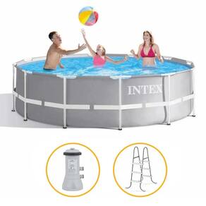 Características: Marca: Intex Material: lona de três camadas de PVC-poliéster extremamente resistente fabricada com a tecnologia mais avançada do mercado Capacidade: 8.592 Litros Acompanha bomba filtro de 2.006 Litros/hora Acompanha escada Dimensões: 366cm diâmetro x 99 cm de altura Montagem rápida e fácil