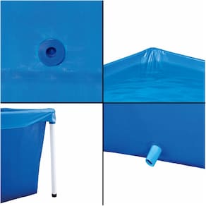 Possui pintura epóxi à pó. Os pés com acabamento emborrachado e as escoras de segurança evitam que a piscina deslize no solo. Possui válvula de deságue para facilitar a limpeza e uma tripla camada que garante a durabilidade do produto.