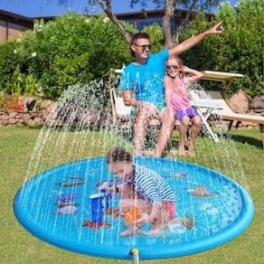 O tapete é grande o suficiente para levar até 6 crianças. Será diversão sem fim e vai manter seus filhos frescos no verão quente.