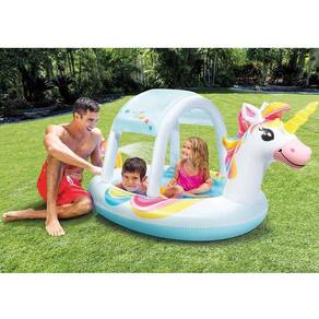 Esta piscina de unicórnio com teto removível e cascata de água embutida na cauda foi projetada para que as crianças imaginem histórias de fantasia enquanto se refrescam. Além disso, graças ao toldo incluído, estarão sempre protegidas do sol e, com o chuveiro em formato cascata que pulveriza água, será diversão sem parar. O seu uso é recomendado para crianças maiores de 2 anos, comporta até 130 litros de água no seu interior e é ideal para o banho de duas crianças. é feito de vinil resistente, possui 2 câmaras de ar e inclui um remendo de reparo. Características e instruções de utilização: - Piscina unicórnio inflável com teto removível. - Mede 254x132x109 cm. - Capacidade para 130 litros de água e espaço para duas crianças. - Material de vinil forte com uma espessura de 0,30 mm. - Com chuveiro embutido na cauda do unicórnio. (necessário acoplar mangueira para funcionamento) - Recomenda-se enche-la até uma altura de 18 cm. - é recomendado para crianças a partir de 2 anos. - Inclui remendo de reparo para possíveis furos. - Com válvula de drenagem e 2 câmaras de ar. - Para ativar a cascata de água, conecte-a a uma mangueira. - Uso sempre sob a supervisão de um adulto. - Instale numa superfície nivelada.