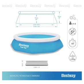 Conteúdo: 1 Piscina Bestway 4.600l, 1 Kit Reparo, 1 Manual de Uso.