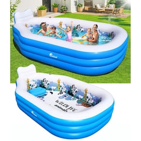 Piscina inflável para crianças e adultos, grande piscina adulta espessa para quintal com assento e encosto, piscinas infláveis para crianças ao ar livre, piscinas infláveis de 304 x 199 x 63 cm