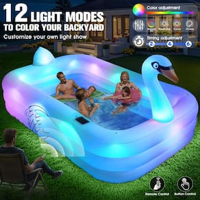 - Quão charmosa é a piscina? Imagine isso: conforme o sol mergulha abaixo do horizonte e a brisa quente começa a acariciar sua pele, sua piscina de cisnes de 12 modos de luz ocupa o centro do palco! Ela ostenta 12 modos de luz deslumbrantes que transformam instantaneamente seu quintal comum em um reino hipnotizante de conto de fadas. E aqui está a melhor parte – você é o mestre desta magia! Basta pressionar um botão ou usando o prático controle remoto, você pode alternar sem esforço entre as telas de luz deslumbrantes