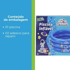 Piscina Inflável Infantil Bebê Redonda 3 Arcos 66L DM Splash A piscina inflável 03 anéis é linda Com 3 anéis coloridos e resistentes, essa piscina inflável vai transformar o dia das crianças em uma verdadeira festa Perfeita para brincadeiras refrescantes no verão, ela é ideal para bebês e crianças a partir de 2 anos. Leve, prática e fácil de montar, é a escolha certa para diversão em família - Design divertido: Com 3 anéis coloridos, a piscina chama a atenção e deixa a brincadeira ainda mais animada. - Segurança e conforto: Feita em PVC resistente, é segura e confortável para os pequenos. - Fácil de montar: Basta inflar os anéis e encher com água para começar a diversão. - Portátil: Leve e compacta, pode ser Utilizado em quintais, varandas ou até em viagens. Características / Conteúdo da Embalagem: - Capacidade de água: 66 litros. - Medidas: 74 cm de diâmetro x 25 cm de altura. - Material: PVC resistente e durável. - Acessórios incluídos: 02 adesivos para reparo. - Idade recomendada: Acima de 2 anos. 1. É fácil de inflar - Sim, a piscina é fácil de inflar manualmente ou com bomba de ar não inclusa . 2. Qual a profundidade da piscina - A piscina tem 25 cm de altura, ideal para bebês e crianças pequenas. 3. Pode ser Utilizado em qualquer superfície - Recomendamos usar em superfícies planas e lisas, como gramados ou pisos antiderrapantes. 4. Como guardar após o uso - Após esvaziar e secar, a piscina pode ser desmontada e guardada em local seco. Leve a Piscina Inflável Infantil Bebê Redonda 3 Arcos 66L DM Splash e transforme os dias de calor em momentos inesquecíveis de diversão Ean: 7899205970187