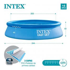 Lona de Três Camadas: A resistência e durabilidade são garantidas pela lona laminada de três camadas de plástico PVC, proporcionando uma estrutura robusta e confiável. Montagem Descomplicada: Inflável e fácil de montar, basta estender a piscina em uma superfície plana, inflar o anel superior e está pronta para uso. A simplicidade na montagem é um diferencial para a diversão imediata. Formato Arredondado: Seu design arredondado permite uma instalação versátil em diversos espaços, facilitando a escolha do local de instalação e proporcionando máxima flexibilidade. Tamanho Ideal: Com capacidade para 1942 litros, esta piscina é perfeita para garantir momentos agradáveis nos dias mais quentes, proporcionando lazer para toda a família. Garantia e Acessórios: A Piscina Inflável Easy Set possui 6 meses de garantia pelo fabricante, acompanhada de um kit de reparo e manual de instruções. Informações Extras e Cuidados: