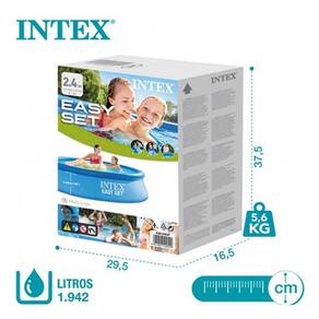 Tipo de Piscina: Inflável Capacidade: 1942 litros Formato: Redondo Diâmetro: 244 cm Altura: 61 cm Peso: 4,45 Kg Material: Plástico PVC (80% PVC - 20% PET) Capacidade de Pessoas: Até 4 pessoas Montagem: Desmontado, com tempo estimado de 10 minutos e complexidade baixa. Dica: