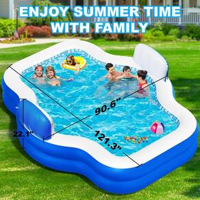 - PISCINA INFLÁVEL DE TAMANHO FAMILIAR - A piscina inflável familiar Vantacet89 121 “X 90" X 22” é 30% maior do que uma piscina inflável normal. Sua espessura também é 3 vezes maior que a de uma piscina normal. Maior e mais resistente (incluindo bomba)