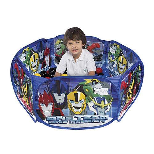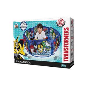Piscina feita em tecido poliéster com estampa dos transformers, possui armação em aço. Acompanha 100 bolinhas nas cores preta, azul, vermelha e amarela. É pura diversão!!
