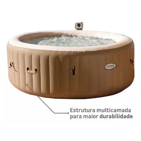 SPA Inflável PureSPA Bubbles, da IntexCamada tripla de PVC:O SPA conta com tripla camada em PVC aliada a tecnologia exclusiva Fiber-tech formada por milhares de fibras de poliéster de alta resistência para garantir uma ótima durabilidade.120 saídas de ar:O modelo conta com 120 saídas de ar que geram bolhas para um efeito massagem perfeito para proporcionar que você disfrute do SPA de forma tranquila e relaxante.Display multifunções:O SPA dispõe de um display multifunções com diversos recursos como ajuste de temperatura, bolhas de massagem e aquecedor. Tudo para um grande varidade de usos em qualquer momento.Capa de proteção:O produto já vem com uma capa de cobertura para que você possa cobrí-lo e mantê-lo protegido quando não estiver usando, evitando sujeira na água e manutenções indesejáveis.A experiência única de uma massagem com bolhasDescubra a incrível sensação de uma sessão de hidroterapia em casa com o PurSPA Bubbles, um SPA inflável de última tecnologia para oferecer uma experiência relaxante e única no conforto da sua casa.Seu elegante e sofisticado desenho em bege o converte em um complemento à mais na decoração, além de ter formato redondo, que permite a adequação a uma grande variedade de espaços.O modelo conta com display multifunções que permite um amplo controle do SPA, em especial a ativação dos jatos que o transformam em uma verdadeira hidromassagem. Sua estrutura em PVC de três camadas completa sua experiência de forma durável e segura.Produto SPA InflávelMarca IntexCapacidade 795,00 LFormato RedondoAltura 71,00 cmProfundidade 71,00 cmDiâmetro 245,00 cmÁrea de Uso 3,50 m²Peso do Produto 49,00 KgMaterial PlásticoTipo de Material PVCMontagem DesmontadoTempo Estimado de Montagem 60 minInstruções de Montagem Acompanha o produtoComplexidade de Montagem Média: pode ser montada por mais de uma pessoa leigaCapacidade de Pessoas 4 pessoa(s)Contém Jato Bolhas Com Jato BolhasAcompanha Filtro/Bomba SimMaterial do Filtro/Bomba PlásticoTensão Elétrica do Filtro/Bomba 127V (110V)