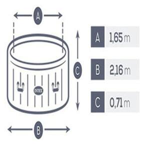 Com capacidade generosa de 1098 litros, este spa redondo de 216cm de diâmetro oferece um ambiente aconchegante para suas sessões de relaxamento. Com uma altura de 71cm, é perfeito para mergulhos revigorantes e momentos de tranquilidade.