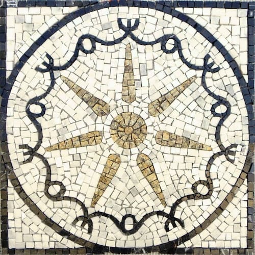 Especificações técnicas do mosaico: Feito com pedras - Mármores e granitos de todo o e importados da Europa e Ásia - para obter todas as cores desejadas em pedras naturais; Vem todo montado sobre tela, só colocar conforme manual de colocação, Resistência e Durabilidade em área interna e externa; Espessura de 10 mm Mesma espessura do porcelanato ou piso cerâmico Liso e agradável para uso diário; Mosaico feito integralmente à mão com técnica do mosaico romano;