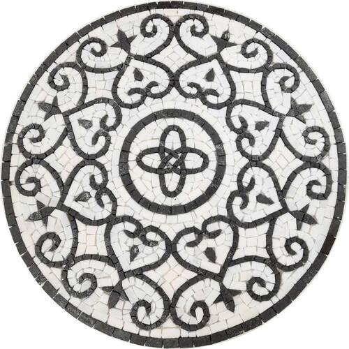 A mandala é baseada em um antigo piso de entrada romano e foi reinterpretada para fins decorativos modernos, mantendo as cores tradicionais do mosaico romano em preto e branco. Os principais motivos presentes são: