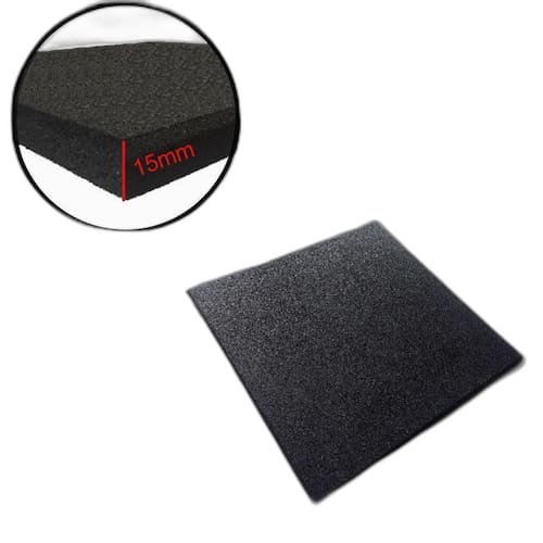 Piso Emborrachado para aparelhos de academia e peso de cross 50x50 - 15mm PRETO Piso de Borracha Anti Impacto - 50cm x 50cm x 15mm Piso de Borracha é destinado a receber alto impacto e proteger o piso abaixo. Os 15mm garantem que ao largar um peso livre o piso que se encontra abaixo não seja danificado. Piso de Borracha ideal para: Áreas de Pesos Livres em Box de Cros; Centro de Treinamento Funcional; Academias Convencionais; Levantamento de Peso; e Playgrounds Infantis. Especificações: - O Produto é Novo; - O Metro Quadrado m é composto por: 4 placas de 50 cm x 50 cm x 15 mm de borracha; - O peso por placa é de aproximadamente 3,5kg, totalizando 14kg por m; - Completamente lavável; - Recortável, se adaptando à todas as curvas e quinas de seu espaço.