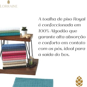A toalha de piso Royal é confeccionada em 100% Algodão que garante alta absorção e conforto em contato com os pés, ideal para a saída do box.