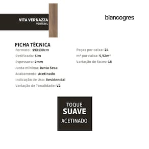 O Piso Vinílico Biancogres Vernazza 2mm Capa 0,15 19x130cm combina o charme da madeira com a praticidade do vinílico, proporcionando beleza e conforto a qualquer ambiente. Seu acabamento acetinado e relevo acentuado garantem um visual sofisticado e uma sensação agradável ao toque. Retificado para um ajuste perfeito e fácil instalação, é ideal para quem busca um piso funcional e elegante. Transforme seu espaço com o estilo e a praticidade do Vernazza. Adquira já na ABC da Construção!