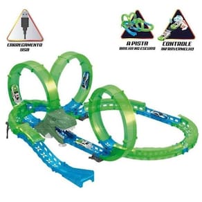 Batalha Da Pista De Dinossauro - Toyng 48520A Batalha Da Pista De Dinossauro - Toyng 48520 é um conjunto de pista extremamente divertido e emocionante que vai encantar os fãs da era jurássica. Com esta incrível pista, a brincadeira da sua criança será sempre empolgante e divertida.Com a possibilidade de montar diferentes pistas, a diversão está garantida. Cuidado com o grande Dinossauro no meio da pista, pois ele pode abocanhar o carrinho a qualquer momento. A pista brilha no escuro, deixando a brincadeira ainda mais emocionante. Além disso, o carrinho possui controle por infravermelho, permitindo que a criança o movimente pela pista de forma fácil e divertida. O conjunto conta com uma pista circular com loop em 360o, proporcionando manobras incríveis. O carrinho é luminoso e possui carregamento via USB, garantindo horas de diversão sem preocupações com pilhas.A Batalha Da Pista De Dinossauro - Toyng 48520 é recomendada para crianças a partir de 06 anos de idade e possui todas as peças necessárias para a montagem da pista, além do carrinho, carregador e cabo USB.Especificações:- Referência: 48520- Código de Barras: 7899871619113- Embalagem (C x A x L): 47 x 32 x 09 cm- Embalagem (Peso): 0.950 g- Material / Composição: Acrilonitrila Butadieno Estireno, sílica, liga metálica, poliacetal copolímero, polipropileno- Alimentação: 02 Pilhas AAA (Não Inclusas)- Registro: 009632/2022- Certificado: Órgãos Autorizados - OCPS (Organismos de Certificação de Produtos)- Homologação Inmetro: IP-BRI-1270/2022-09Benefícios de brincar:- Eleva a autoestima- Exercita a memória- Estimula o raciocínio- Exercita o imaginário- Desenvolve a criatividade- Desenvolve percepção visual- Desperta a atenção e curiosidade- Desenvolvimento neuropsicológico- Estimula habilidades motoras básicas- Incentiva a comunicação e linguagem- Desenvolve aspectos emocionais e afetivos- Estimula o reconhecimento de formas e cores