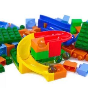 Com peças coloridas e de diferentes formas, permite montar variados modelos de pistas para que as bolinhas de gude corram por todo o caminho