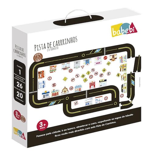 passear pela cidade, ir ao banco, abastecer o carro respeitando as regras de trânsito ficou muito mais divertido com a pista de carrinhos. Feito de madeira mdf reflorestada. Contém 1 pista de carrinhos em formato de quebra-cabeça, 26 placas de trânsito e 20 edificações. Indicado para crianças a partir de 3 anos. Recomenda-se a interação de um adulto. Utilizamos materiais seguros, duráveis e ecológicos. - marca: babebi - dimensões: 27 x 27,5 x 4 cm - - faixa etária: indicado para crianças à partir de 3 anos - contém: 1 pista de carrinhos em formato de quebra-cabeça, 26 placas de trânsito e 20 edificações - ean: 7898102626883 - certificado pelo inmetro ce-bri/saron-n-00135-19 nm 300/2002 segurança do brinquedo