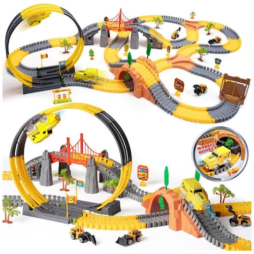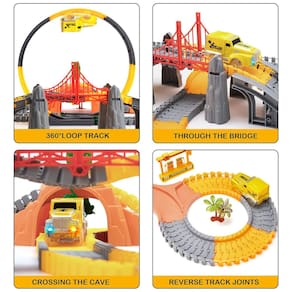 Este é o novo conjunto de pista de corrida de construção com 342 peças. O pacote inclui 300 x pistas de corrida flexíveis, 2 corridas de construção elétrica, 16 dispositivos de ponte, 9 x 360º pistas, 2 pistas reversas, 1 pista de porta, 3 veículos de engenharia e 9 sinais de trânsito. Este conjunto é perfeito para incentivar a cooperação entre as crianças e melhorar sua capacidade de raciocínio lógico. Além disso, o conjunto vem equipado com uma pequena escavadeira, empilhadeira, perfurador e sinais de trânsito para enriquecer todo o espaço da pista de corrida. A borda da pista de construção e as peças são polidas suavemente, garantindo que as crianças tenham um processo de toque perfeito e também fácil de montar e desmontar. As corridas exigem novas baterias AAA de 21,5 V antes de escalar. A caixa de cores requintada torna este item de pista de corrida de construção muito adequado como um presente para meninos acima de 3 anos. Em caso de peças faltando, para substituições .