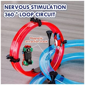 A estabilidade do carro de corrida é garantida pelo design magnético da pista, o que impede que o carro saia da pista. O conjunto inclui 164 carros, 2 veículos e 2 reguladores de controle de velocidade que utilizam 2 pilhas AAA não inclusas . O carro tem uma bateria de íon de lítio de 3,7 V embutida e vem com 1 fio de carregamento USB e instruções para 1 x loop de montagem. Este conjunto é indicado para crianças a partir de 6 anos e é feito de plástico ecológico, seguro e não tóxico. A montagem é fácil e divertida, com instruções claras e peças de pista curvada.
