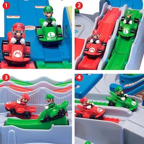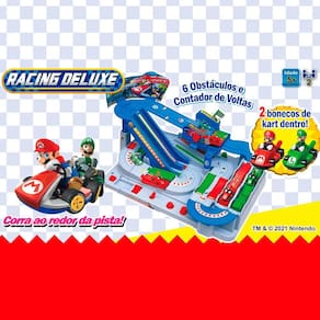 Pista de Corrida - Mario Kart - Racing Deluxe - Epoch: emocionante jogo de corrida de circuito de ação inspirado no clássico Mario Kart. Corra por 6 obstáculos para chegar ao objetivo! Quem será o primeiro a finalizar as cinco voltas? Use os botões e alavancas para manobrar por 6 obstáculos e correr até a linha de chegada! Pratique suas habilidades de corrida e compita pela volta mais rápida Detalhes: • Acompanha 2 bonecos de kart: Mario e Luigi • 06 obstáculos emocionantes para se divertir Informações: • Produto: Pista de Corrida Mario Kart Racing Deluxe • Marca: Epoch • Coleção: Super Mario • Linha: Mario Kart • Tipo: Pista de Percurso • Categoria: Carrinhos e Cia • Conteúdo: - 01 pista - 02 bonecos de kart • Recomendação: para crianças maiores de 05 anos de idade Especificações: • Referência: 7390 • Código de Barras: 5054131073902 • Embalagem (C x A x L): 51 x 31 x 09 cm • Embalagem (Peso): 1.338 kg • Composição / Material: Plástico • Registro: 008015/2021 • Certificado: Órgãos Autorizados - OCP´S (Organismos de Certificação de Produtos) Aviso: • As imagens são meramente ilustrativas • Os pesos, tamanhos e medidas são aproximados • As cores e estampas dos produtos podem ter variações • As informações são de responsabilidade do fabricante ou fornecedor