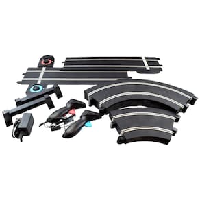 Este conjunto de corrida de hobbies premium inclui tudo o que você precisa para começar a correr. Ele vem com uma pista completa, transformador e controladores personalizados para dois carros. Os controladores manuais possuem um seletor de potência que permite ajustar a velocidade dos carros, tornando o perfeito para iniciantes ou para aumentar a velocidade máxima para corridas mais desafiadoras.