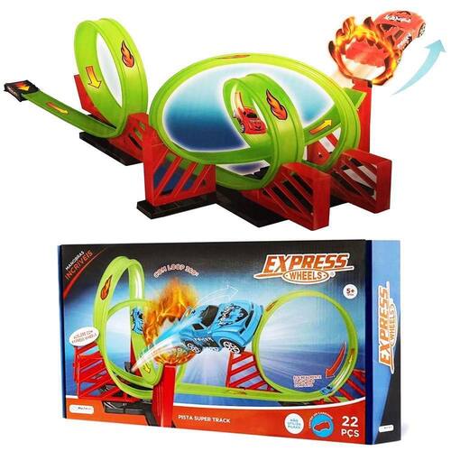 A Pista de Corrida Super Track com Loop 360 Carrinho e 22 Peças é perfeita para proporcionar muita diversão e adrenalina durante as brincadeiras. Com a linha Express Wheels da Multikids, a hora de brincar será cheia de emoção!