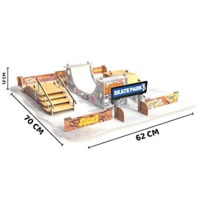 O Skate Park é um conjunto de skate de dedo que conta com: Uma Rampa Com Escada e Corrimão, Caixote, Obstáculos, Rampa Com Gap e Half. Tudo isso para aprender, treinar e ser o campeão de manobras no skate de dedo
