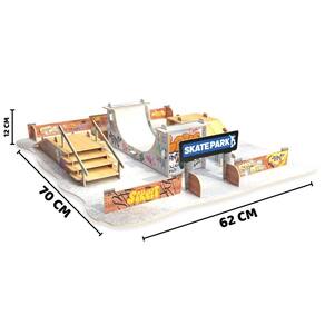 O Skate Park é um conjunto de skate de dedo que conta com: Uma Rampa Com Escada e Corrimão, Caixote, Obstáculos, Rampa Com Gap e Half. Tudo isso para aprender, treinar e ser o campeão de manobras no skate de dedo