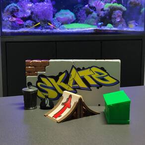 A Pista de Skate de Dedo 3D Muro Graffiti Wall traz uma experiência autêntica para os fãs de fingerboard, com acessórios inclusos como um muro, uma lixeira, um saco de lixo e uma lixeira pequena.