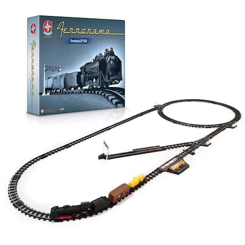 Qual criança não sonha em ser um maquinista de uma Locomotiva XP 300? Agora as crianças podem se divertir com o relançamento da Pista e Locomotiva - Ferrorama XP 300 - Escala 1/64 - Estrela. Com pista de trem locomotiva movida à pilha. Acompanha 5 postes, 2 sinaleiros, 1 conjunto de desengate dos vagões e 1 comando de alavanca. Quando montada a pista chega tem a medida de 180cm x 60cm. Embarque nessa diversão com a Locomotiva e Ferrorama XP 300 da Estrela OBJETIVO DO JOGO Montar a pista e guiar o trem utilizando do comando de alavanca INFORMAÇÕES: • Produto: Ferrorama XP 300 • Tipo: Pista de trem com Locomotiva elétrica infantil • Marca: Estrela • Medidas da embalagem: 39 x 10 x 53 cm • Peso da embalagem: 1720 Kg • Conteúdo: 10 curvas, 5 retas menores, 1 comando de alavanca, 1 desvio longo esquerdo, 1 desvio longo direito, 1 desvio curto, 4 retas maiores, 5 postes (conjunto de 3 peças), 1 sinaleiro com escada, 1 sinaleiro sem escada, 1 para-choque, 1 conjunto de desengate dos vagões, 1 locomotiva modelo a vapor, 1 carvoeiro (Tênder), 1 vagão cargueiro, 1 vagão tanque, 1 cartela de adesivos e 1 manual de instruções. • Bateria: 2 pilhas alcalinas tipo C de 1,5V (não inclusas) • Certificado: CE-BRI/INNAC - 1QB-AJ001 • Composição / Material: Plástico • Idade Recomendada: para crianças a partir de 6 anos de idade AVISO: • As imagens são meramente ilustrativas. As cores e estampas dos produtos podem ter variações. As informações são de responsabilidade do fabricante ou fornecedor. ATENÇÃO: • Agora você sabe onde comprar Ferrorama XP 300 - Estrela. Aproveite nossas condições de pagamento. Entrega para todo o Brasil. Oferta válida por tempo indeterminado. Produto sujeito a disponibilidade de estoque.