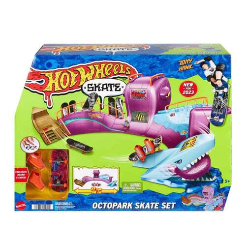 Pista e Skate de Dedo - Hot Wheels - Skatepark de Polvo - Mattel: Arrase com estilo com o conjunto Hot Wheels Skate Skatepark de Polvo. Faça manobras sobre a cabeça do polvo gigante e aproveite um passeio épico de skate de dedo com corrimãos, rampas e uma surpresa de tubarão. Inclui skate exclusivo totalmente montado e um par de tênis de skate removíveis. O armazenamento na parte de trás tem capacidade para mais três skates e mais cinco pares de tênis. (Skates e tênis adicionais vendidos separadamente.) As cores e as decorações podem variar. Detalhes: • Domine as técnicas e manobras do conjunto de skate Hot Wheels Skate Octopark! • São 77 cm de circuito para manobras radicais • O conjunto com tema polvo conta com corrimãos, canos, escadas, bowls e bordas para superfícies de skate variadas e diversão sem fim. Há até mesmo um tubarão com recurso de mordida ativado pelo skate! • Inclui skate exclusivo e totalmente montado e um par de tênis de skate removíveis para ajudar os principiantes a aprender a dominar truques. • A parte de trás do conjunto tem capacidade para armazenar 4 skates de dedos e 6 pares de tênis de skate para visuais adicionais. (Skates e tênis adicionais vendidos separadamente.) Informações: • Produto: Conjunto Skate de Dedo com Pista Skatepark de Polvo • Marca: Mattel • Coleção: Hot Wheels Skate • Tipo: Skate em Miniatura de Dedo • Categoria: Skates de Dedo • Conteúdo: - 01 Pista Montável - 01 Skate de Dedo - 01 Par de tênis de skate removíveis • Recomendação: para crianças a partir de 05 anos de idade Especificações: • Referência: HMK01 • Código de Barras: 194735129101 • Embalagem (C x A x L): 40,5 x 33 x 11,5 cm • Embalagem (Peso): 1.486 kg • Material / Composição: Plástico e Metal • Registro: 005143/2021 • Certificado: Órgãos Autorizados - OCP´S (Organismos de Certificação de Produtos) Benefícios de brincar: • Eleva a autoestima • Exercita a memória • Estimula o raciocínio • Exercita o imaginário • Desenvolve a criatividade • Desenvolve percepção visual • Desperta a atenção e curiosidade • Desenvolvimento neuropsicológico • Estimula habilidades motoras básicas • Incentiva a comunicação e linguagem • Desenvolve aspectos emocionais e afetivo • Estimula o reconhecimento de formas e cores Aviso: • As imagens são meramente ilustrativas • Os pesos, tamanhos e medidas são aproximados • As cores e estampas dos produtos podem ter variações • As informações são de responsabilidade do fabricante ou fornecedor
