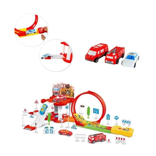 Pista Estacionamento Bombeiro Fire Hot Weells Lançador 43 Pç
