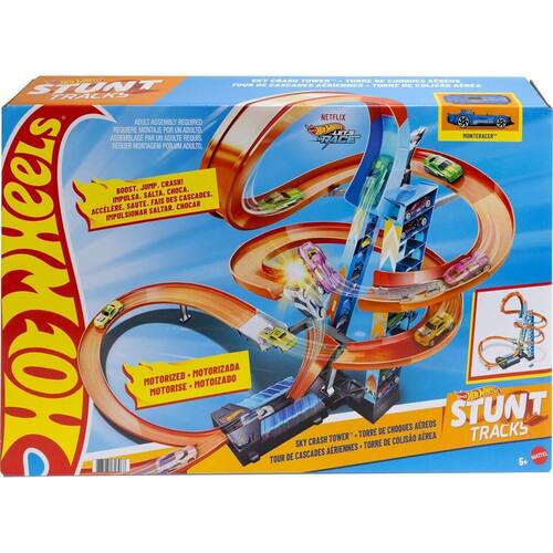 -O Hot Wheels Sky Crash Tower foi desenvolvido para corridas repletas de ação e batidas, com um amplo espaço para aventuras e 83 cm de altura.