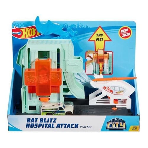 Pista Hot Wheels City Ataque de Morcego No Hospital GJK90 Ataque de Morcegos no Hospital - Hot Wheels City - Mattel - GJK90 Viva muitas aventuras e faça manobras radicais com este incrível conjunto Hot Wheels As crianças podem explorar o Hot Wheels City através dos seus locais favoritos, usando seus veículos Hot Wheels Obs.: Não é compatível com alguns veículos Hot Wheels. Cada conjunto se conecta diretamente a outros conjuntos Hot Wheels City com o novo sistema de conexão, ainda compatível com sua esteira laranja. Acompanha um carrinho exclusivo Carrinho , as cores podem variar, imagem meramente ilustrativa. ESPECIFICAÇÕES Fabricante: Mattel Código do Fabricante: GJK90 Código de Barras: 887961585858 Atenção: Não indicado / não recomendável para crianças menores de 3 três anos por poder gerar partes pequenas que podem provocar asfixia. Itens inclusos: 01 Conjunto de Pista e 01 Carrinho Segurança: Selo Inmetro CE/BRI/INNAC-00128-18A - NM 300/2002 Material: Plástico do fabricante: 90 dias contra defeitos de fabricação Dimensões aproximadas do produto na embalagem cm : 23 x 14 x 30 AxLxC Peso aproximado do produto: 570g Aviso: As cores e as decorações podem variar. Imagem meramente ilustrativa. , , com , na caixa e disponível para pronta-entrega