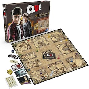 Nesta Edição Harry Potter do jogo Clue, um aluno desapareceu da Escola de Magia e Bruxaria de Hogwarts. Quem pode resolver o misterioso desaparecimento? As crianças brincam como Harry, Ron, Hermione, Ginny, Luna ou Neville para descobrir quem fez isso, que feitiço ou item foi , e onde o ataque aconteceu. Os fãs de Harry Potter reconhecerão a Owlery, a Sala de Troféus e outros lugares do Mundo Mágico no tabuleiro de jogos de Hogwarts. Rolar uma crista da casa na morte de Hogwarts permite que o jogador mova uma roda no tabuleiro um entalhe. Revelará passagens secretas, escadas de mudança, portas que podem ou não estar disponíveis para uso, ou a Marca Negra pode aparecer. Vá de local para localização em Hogwarts e reduza as possibilidades à medida que outros jogadores mostram suas cartas. Se alguém acha que resolveu o caso, vai ao escritório do Dumbledore fazer uma acusação. Uma acusação correta ganha o jogo. O jogo de tabuleiro é para crianças de 8 anos ou mais. Hasbro Gaming e todas as marcas comerciais e logotipos relacionados são marcas comerciais da Hasbro, Inc.