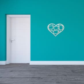 Lindo porta retratos cortado a laser, para 4 fotos decorando o seu ambiente em formato de coração, para relembrar as pessoas amadas.