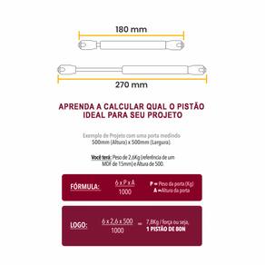 O pistão de força normal modelo standard da renomada marca HD, é uma excelente escolha para a montagem de portas basculantes em mobiliários. Com um corpo em aço e ponteiras de polímero, ele combina durabilidade e segurança. O acabamento brilhante na cor branca garante um toque elegante. Este pistão possui uma força de 100 N (Newtons), suportando até 10 kg por porta, e permitindo ângulos de aberturas entre 75° a 110° graus. Suas dimensões são 270 mm quando aberto e 180 mm quando fechado, com 250 mm entre os furos de fixação.