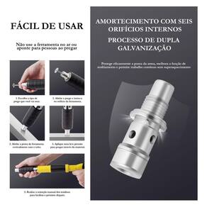 - Versatilidade incomparável: Uma única ferramenta para fixação, rebites e finca-pinos. Ideal para madeira, drywall, e até materiais mais densos.