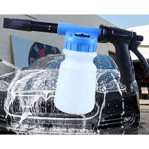Anexe o canhão de lavagem de carros à mangueira, adicione sabão líquido e borrife seu carro sujo. O controle de espuma ajustável infunde grandes quantidades de ar no sabão e na água, criando um manto de espuma espessa, semelhante a um lava-jato profissional.