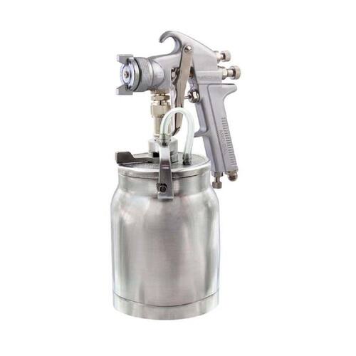 Descrição: - pistola de pintura, alta produção - caneca alumínio, 1 litro, sucção - diâmetro do bico: 1.8 mm - entrada de ar: 1/4 - pressão de trabalho: 50 lbs - consumo de ar: 7.0 pcm