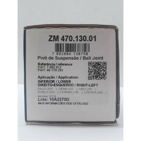 Pivô de suspensão / ball joint zm 470.130.01 fiat palio siena strada uno único - 1 - pivô de suspensão / ball joint zm 470.130.01 fiat palio siena strada uno Especificações: Rosca do pino m12-1,25 Inicio do cone / diâmetro do pino 13,7 Cone 1:5 Diâmetro do furo 8,5 Torque de aperto do pino 87n.M Torque de aperto dos parafusos kit 33n.M Aplicação: Veículo variação do modelo de até Fiat Albea 178, 172 2002 2013 Dobl 119 2001 Dobl cargo 223 2000 Dobl 2002 Fiorino 2014 Grand siena 2013 Mobi 2017 Palio 178 2002 2017 Palio i - fase ii 2001 2007 Palio i - fase iii 2004 2016 Palio i - fase iv 2008 2012 Palio ii 2012 2017 Palio weekend 178, 173, 373, 374 2002 2017 Palio weekend i - fase ii 2001 2004 Palio weekend i - fase iii 2005 2008 Palio weekend i - fase iv 2009 2020 Siena 178, 172 2002 2013 Siena i - fase ii 2002 2006 Siena i - fase iii 2004 2012 Siena i - fase iv 2008 2016 Strada i - fase i 2000 2001 Strada i - fase ii 2002 2006 Strada i - fase iii 2005 2012 Strada i - fase iv 2009 2020 Uno 2010 Código Fiat 46 779 293 7 082 812 Código equivalente Driveway Je-6058 Febi 108829 Meyle 216 010 0004 Moog Fi-bj-4174 Nakata N 6058 Perfect Pvi1032 Rts 93-00187-056 Sidem 19189 Trw Ps959 Viemar 503009 Conteúdo da embalagem: 1 - pivô de suspensão / ball joint zm 470.130.01 fiat palio siena strada uno Características gerais do produto: Modelo: 470.130.01 Marca: zm É kit: não Acompanha o produto: 1 - pivô de suspensão / ball joint zm 470.130.01 fiat palio siena strada uno : Sem