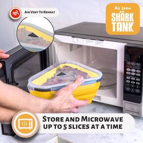 A luta de tentar colocar uma caixa de pizza na geladeira é coisa do passado! O recipiente de armazenamento de pizza restante da Pizza Pack armazena perfeitamente fatias de pizza em um recipiente compacto e hermético que se dobra e se expande para maximizar o espaço da geladeira. Se você não acha que a pizza fica melhor no dia seguinte, então você não a armazenou corretamente. Nossos recipientes de armazenamento de pizza com tampas criam um selo a vácuo que manterá suas fatias de pizza frescas por mais tempo! Cada caixa de fatia de pizza possui uma saída de ar opcional para reduzir a condensação e evitar que você experimente a temida síndrome da fatia de porco. Um recipiente de pizza dobrável é o mais novo acessório de cozinha que você não sabia que precisava, mas não será capaz de viver sem. Design patenteado, todas as fotos e materiais são registrados com direitos autorais da Pizza Pack LLC, Pizza Pack é marca registrada - Economia de espaço – cada recipiente de pizza se desdobra e se expande para acomodar o número de fatias de pizza que você tem. Perfeito para armazenar sobras de pizza sem que uma caixa de pizza ocupe toda a prateleira! - Economia de pizza: se você acha que a pizza não tem um gosto melhor no dia seguinte, então você não a armazenou corretamente. Nossas tampas herméticas de encaixe criam uma vedação a vácuo que manterá suas fatias de pizza frescas por mais tempo! Cada recipiente de pizza possui uma saída de ar opcional para reduzir a condensação e evitar que você experimente a temida síndrome da fatia encharcada. - Pratos perfeitos de pizza: cada caixa de fatia de pizza vem com 5 bandejas divisórias para micro-ondas que não apenas impedem que suas fatias grudem enquanto são armazenadas, mas também funcionam como pratos de pizza quando você quiser reaquecer uma única fatia. - Segura e durável – Nossas caixas de pizza reutilizáveis são feitas com silicone de grau alimentício não tóxico, livre de BPA, inodoro, à prova de vazamento e antiaderente. Eles também podem ser colocados no micro-ondas, freezer e lava-louças. - Design patenteado: protegido sob as patentes USPTO US 11.661.260 B1 e US 12.043.473 B1. Proteção de direitos autorais: todas as obras de arte e texto nas imagens são protegidos por direitos autorais.