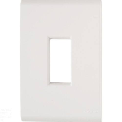 Placa 1 Posto Vertical 4x2 Tramontina Liz Branca As placas da linha Liz são fabricadas em termoplástico com acabamento brilho na cor branca, que não retém poeira, unindo qualidade e praticidade. O sistema é modular, em duas peças: placa e suporte, com gradual ajuste entre ambos, proporcionando perfeito acabamento da placa com a parede. Possuem furo oblongo para facilitar a fixação e a regulagem da placa à parede. Além disso, possuem furos para a fixação em parede de madeira. A fixação não é aparente. A linha Liz é composta por 11 diferentes configurações de placas, sendo 6 configurações nos modelos 4x2 e 5 configurações 4x4, que comportam módulos horizontais ou verticais. Composta também, por tampa redonda para teto, nos modelos 3x3 e 4x4. Os módulos utilizados na linha Liz, são largos, em duas versões de cores: branco e grafite, ambos em acabamento brilho. Acompanham suporte e parafusos para a instalação. Orientações . Características Gerais EAN13 7891435924527 DUN14 17891435924524 NCM 3925.90.90 Peso Líquido 0,0430 kg. Peso Bruto 0,0490 kg. Metragem 0,000375 m³. Dimensões Embalagem (Compr. X Larg. X Alt.) 150x 100x 25 mm. Dimensões Produto (Compr. X Larg. X Alt.) 120x 83x 25 mm. Cor 1 FFFFFF Hexa Observações A instalação e segurança: É importante que o produto seja instalado por profissional habilitado. Antes de instalar, desligue a energia elétrica.