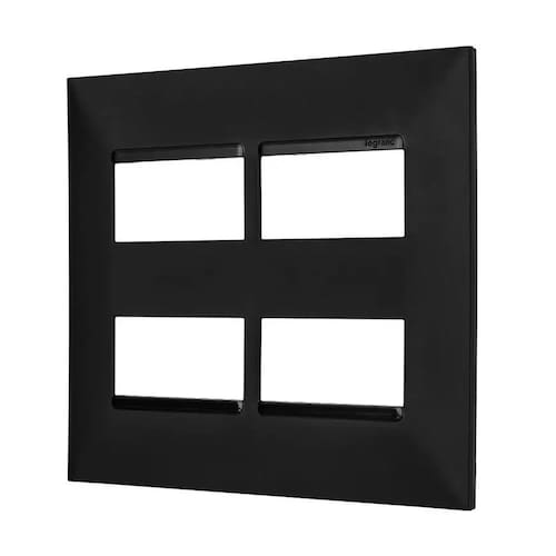 Placa 2+2 Postos Separados 4x4" Preta 618514PT - Pial Legrand