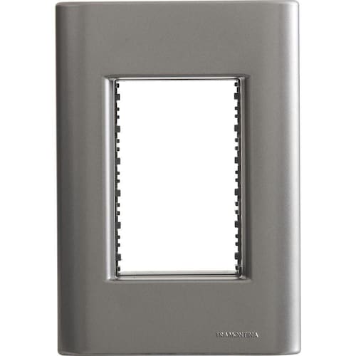 Placa 3 Postos 4x2 Tramontina Giz Onix Metalizado Com Suporte Placa 3 Postos 4x2 Tramontina Giz Onix Metalizado com Suporte Com a placa 3 postos 4x2 Tramontina Giz onix metalizado com suporte você irá garantir um acabamento impecável e cheio de estilo para os ambientes da sua casa. Desenvolvida em termoplástico com sistema modular, ela garante maior facilidade na hora da sua troca ou na troca dos módulos. A placa é metálica e com ela, você compõe espaços mais harmônicos e elegantes!