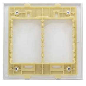 Placa 4x4 cega com suporte na cor branca, modelo RVB-1300/44 da linha RAVENNA. Esta placa oferece uma solução discreta e funcional para cobrir caixas de instalações elétricas, proporcionando um acabamento limpo e esteticamente agradável. Ideal para ambientes onde não há necessidade de instalação de interruptores ou tomadas, mantendo a uniformidade visual do espaço. Fabricada com materiais de qualidade, garante durabilidade e resistência ao uso cotidiano.