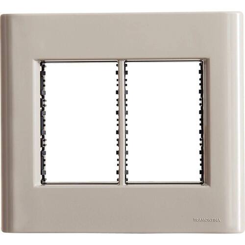 A placa 6 postos 4x4 Tramontina Giz fendi soft touch com suporte é a escolha ideal para garantir um acabamento impecável para as instalações de tomadas e interruptores. Desenvolvida na cor fendi com superfície soft touch, ela tem estrutura em termoplástico e conta com sistema modular, que facilita sua troca e a troca dos módulos. Para criar ambientes mais harmônicos e elegantes, escolha as placas Tramontina Giz!