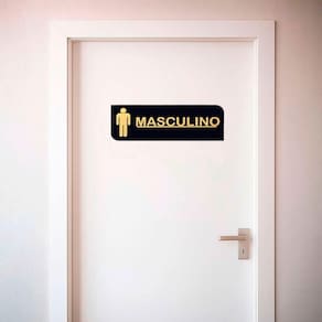 Placa Acrílica Sinalizadora de Banheiro Masculino Decorativa Placa Acrílica Sinalizadora para Banheiro - Masculina Transforme seu ambiente com uma sinalização prática, elegante e acolhedora. Ideal para espaços com banheiro exclusivo masculino, esta placa acrílica é perfeita para lojas, cafés, clínicas, consultórios, escritórios e residências. Versátil e discreta, oferece clareza e bom gosto na identificação do local. Produzida em acrílico espelhado de alta qualidade, a placa possui a palavra Masculino em letras douradas em alto-relevo, acompanhada pelo ícone masculino - garantindo identificação clara e visual sofisticado. O corte e a gravação a laser asseguram acabamento nítido e durável, sem adesivos ou impressão, valorizando a estética do ambiente. Vai pronta para uso: acompanha fita dupla face aplicada no verso, facilitando a instalação em portas ou paredes - sem sujeira, furos ou ferramentas. Seu design moderno e funcional promove uma comunicação direta e acessível, transmitindo qualidade e profissionalismo ao seu espaço. DIMENSÕES APROXIMADAS: - Placa em Acrílico: Altura: 9 cm x Largura: 30 cm x Espessura: 2 mm CARACTERÍSTICAS DO PRODUTO: - Produzida em acrílico de alta qualidade, com corte e gravação a laser. Letras douradas em alto relevo para destaque elegante. Acompanha fita dupla face para instalação rápida e sem furos. Pronta para uso em banheiros residenciais e comerciais. CUIDADOS: - Limpe com pano levemente umedecido. Evite produtos abrasivos. DO PRODUTO: - Produto embalado com cuidado para evitar danos no transporte. Caso haja algum problema, oferecemos e troca para sua tranquilidade. Imagens ilustrativas. Por ser produto artesanal, pode haver variações na cor e tonalidade. Marca: Não Informado
